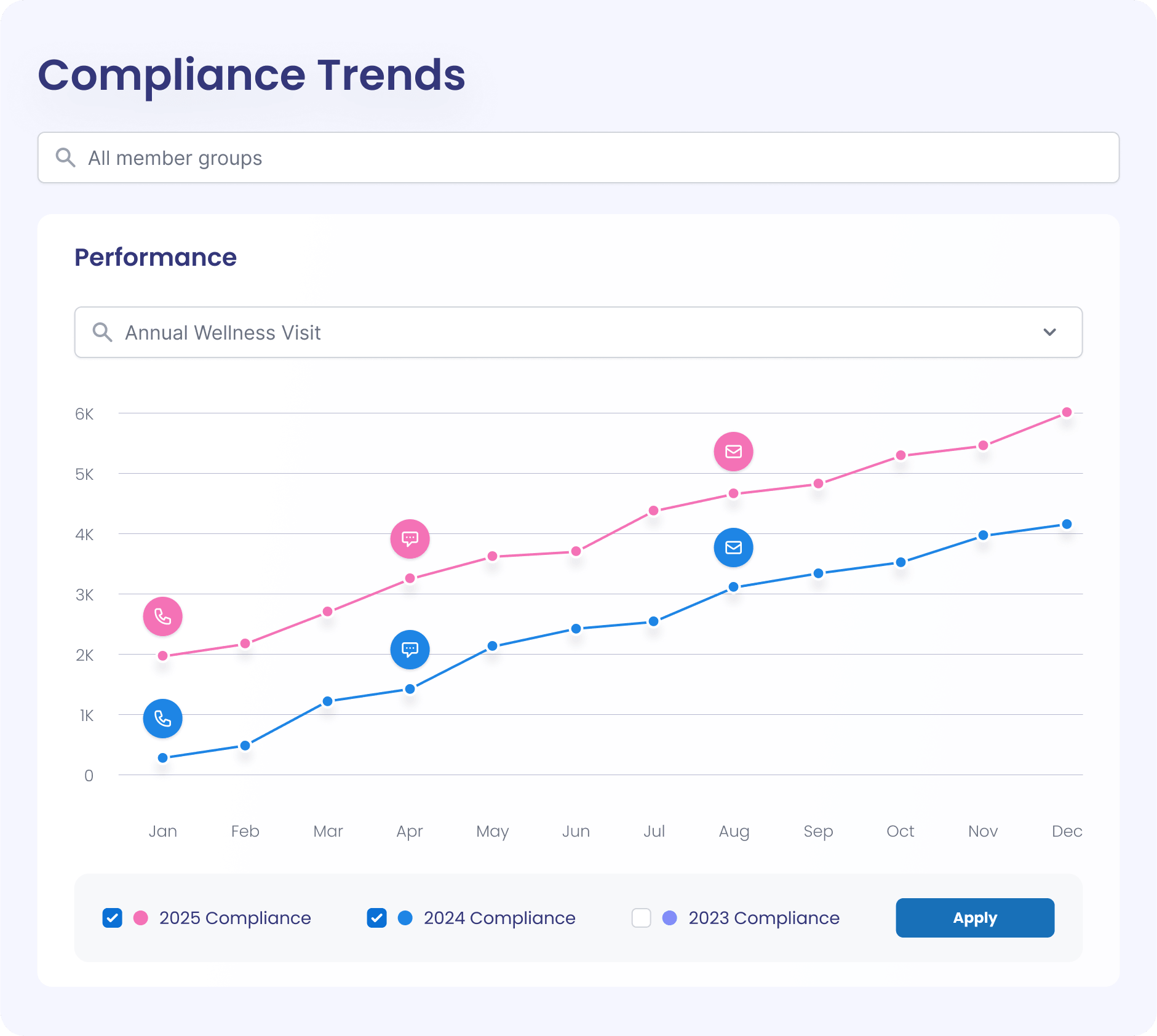 Eliminate patient abrasion and confusion by centralizing member outreach in one platform. By creating a simplified communication strategy that meets the goals of different departments, we help you encourage members to take action, helping to close care gaps and improve health outcomes.